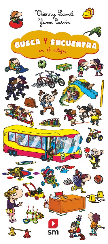Un entretenido libro lleno de detalles para buscar y encontrar objetos en el colegio: en la clase, en el recreo, en el comedor...