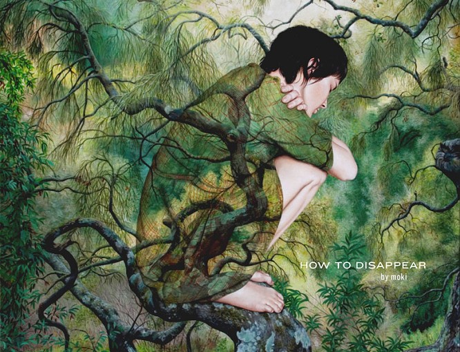 How to Disappear ? it?s a constant concern in artist Moki?s work. Moki?s photorealistic paintings find inspiration in comic book themes and natural and human mysteries.