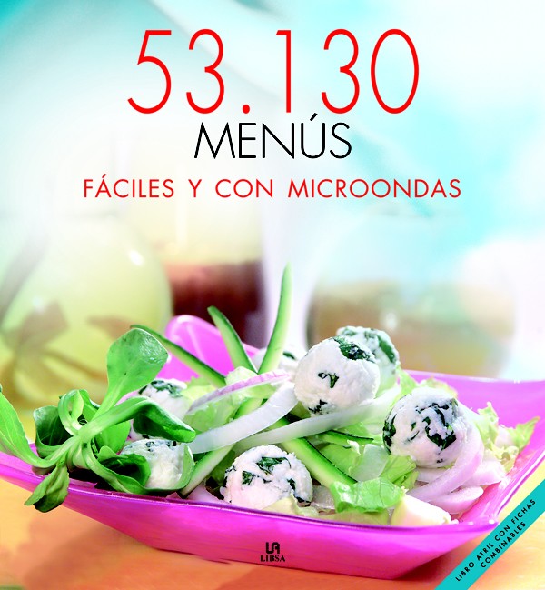 53.130 menús es una colección pensada para agilizar el trabajo en la cocina por su estructura de libro-atril de fácil montaje que se coloca de pie sobre una mesa para leerlo sin dificultad cuando se tienen las manos ocupadas. Además, las fichas con las recetas prácticas de entrantes, principales o postres se pueden combinar entre sí para confeccionar el menú completo, en este caso, para personas con poco tiempo que desean recetas rápidas con el uso del microondas.